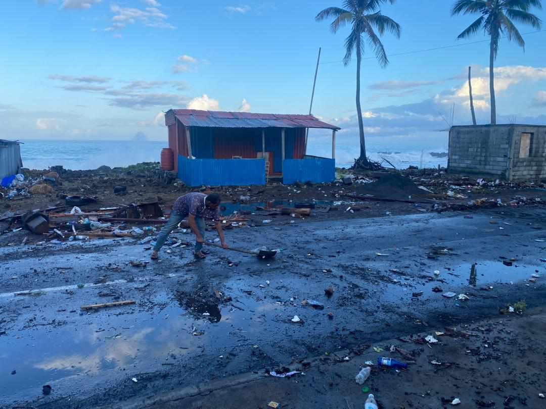Le passage pour le transport en commun était compliqué. Les voitures ont été contraintes d’emprunter un détour pour rejoindre la capitale, Moroni. Dans sa fureur, la mer avait déversé tout sur la route : des pierres, des troncs d’arbres et déchets biodégradables et non biodégradables.